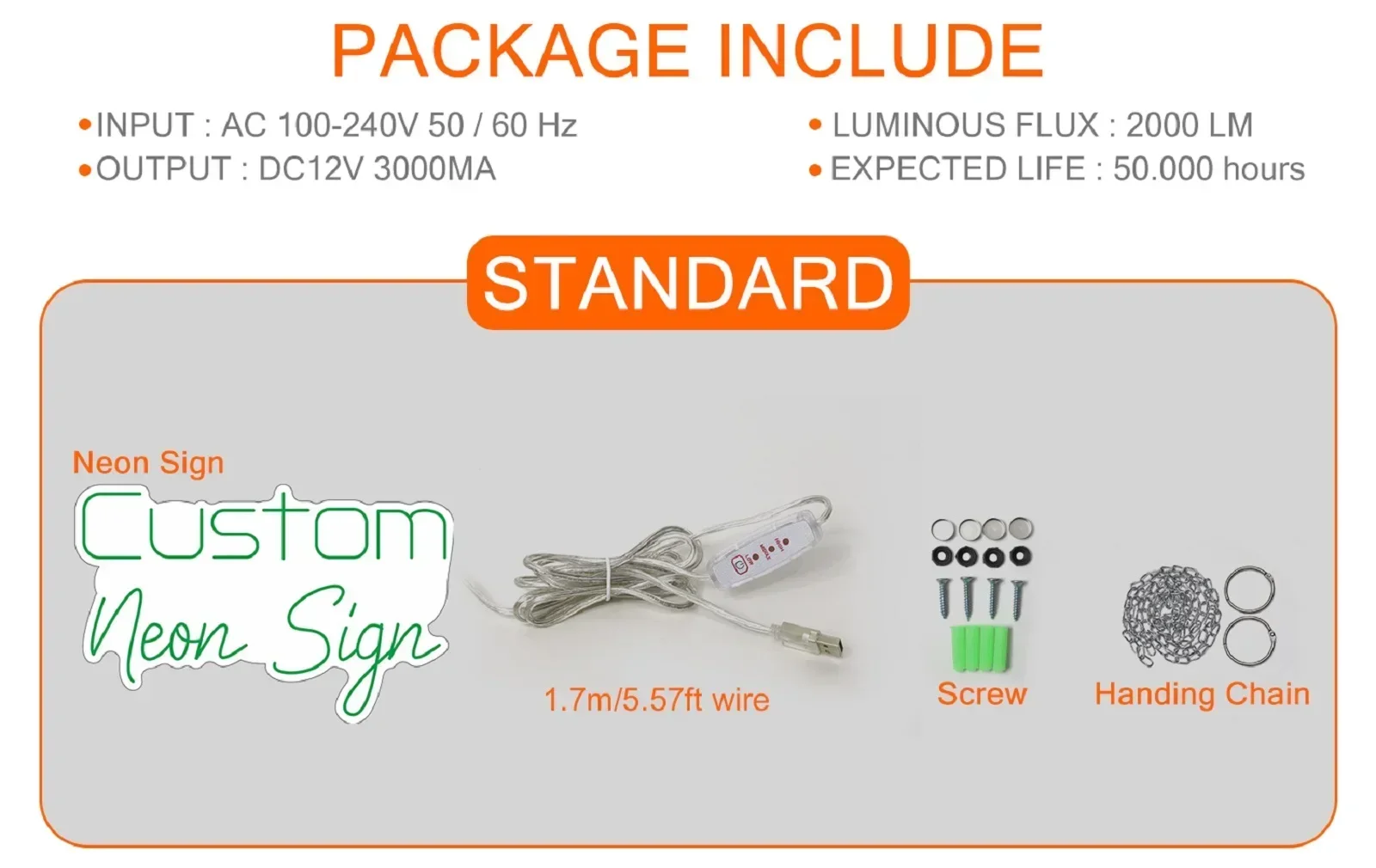 Your neon sign comes ready to hang.